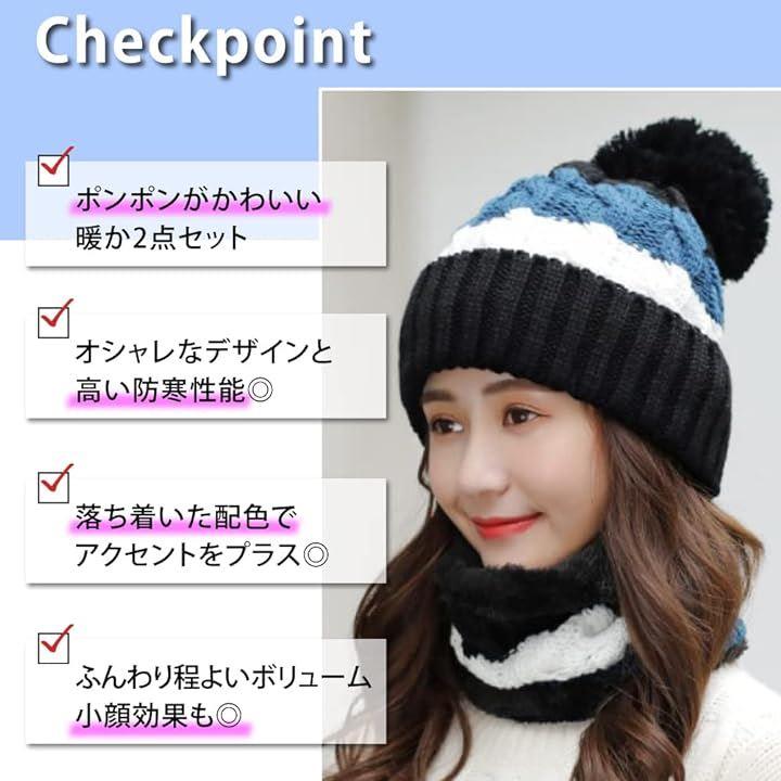 「かわいいニット帽&ネックウォーマーセット」大きめのポンポンがカワイイあったかニット帽とネックウォーマーの2点セットです。