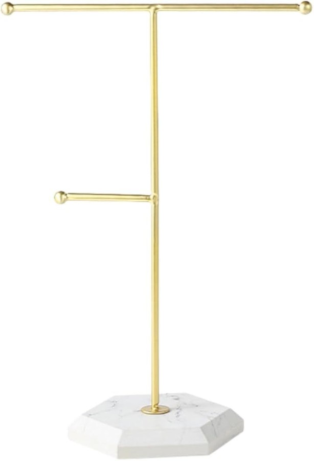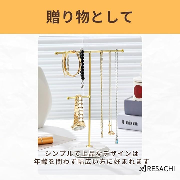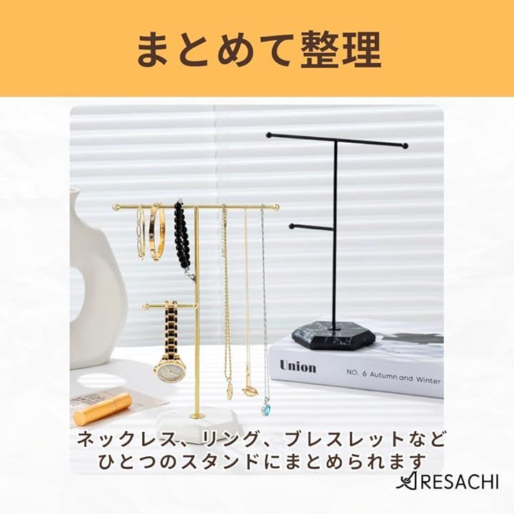 「ピアスもネックレスもまとめて整理」ネックレス、リング、ブレスレットなど、さまざまなアクセサリーをひとつのスタンドにまとめられます。