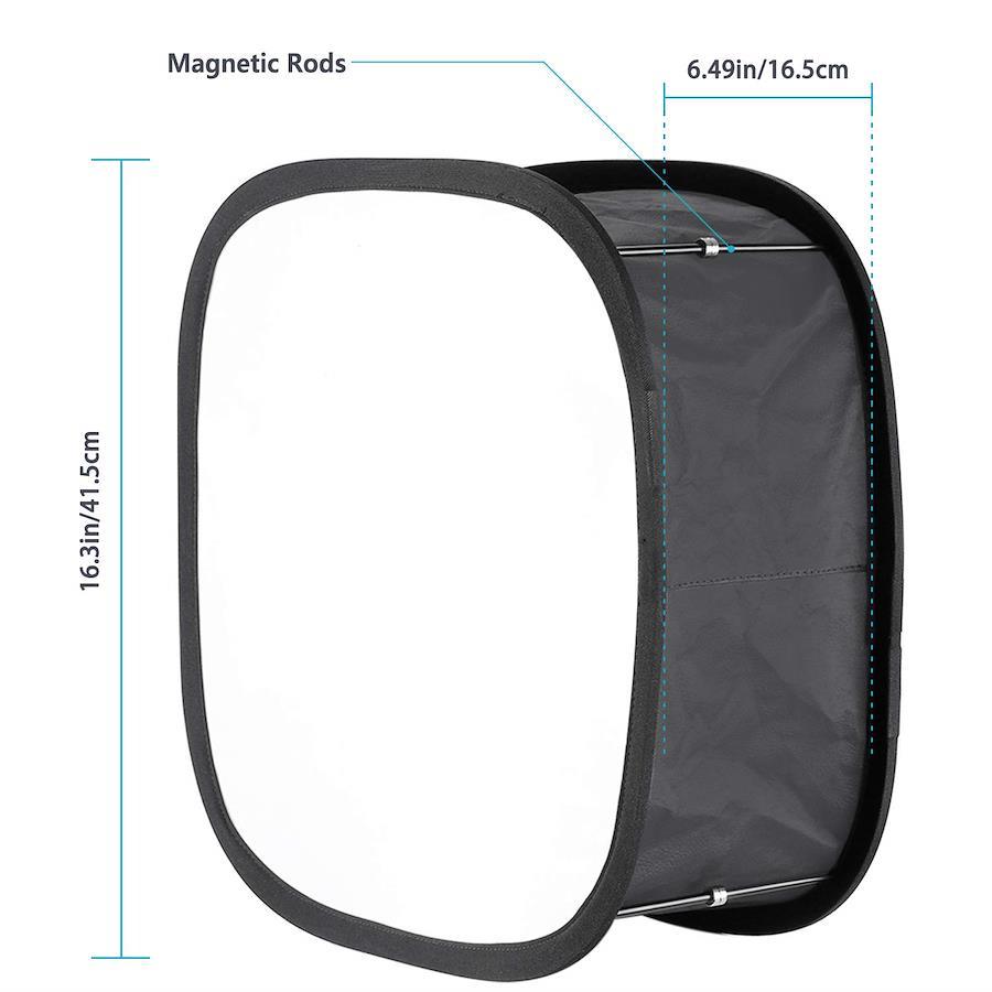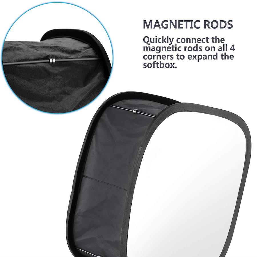 キット内容:(2)ソフトボックス、(2)キャリングバッグ。 肖像画や製品の写真家、ビデオブロガー、野外イベント、ファッションディスプレイ、製品ディスプレイなどに最適です。ご注意:LEDライトは含まれていません。互換性:ポップアップサイズは、LEDライトパネルを取り付けるための9.25×9.25インチの開口部を持つ16.25×16.25×6.49インチです。 ソフトボックスはNeewer 660 LEDビデオライト用に特別に設計されており、使用時に過酷なLEDライトを柔らかくしてオブジェクトの影を消すために、660 LEDライトに安定して取り付けることができます。アタッチメントストラップでインストール簡単:ソフトボックスを広げ、四隅にある4本のマグネットロッドで完全に広げ