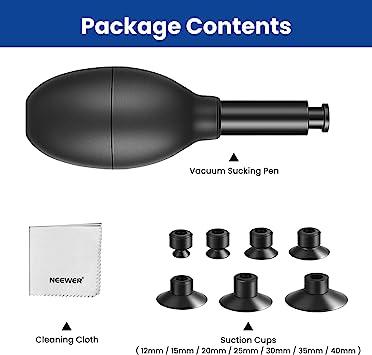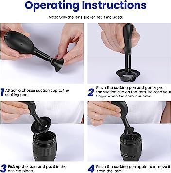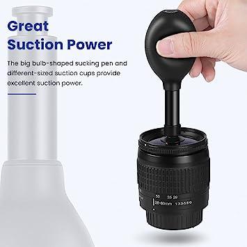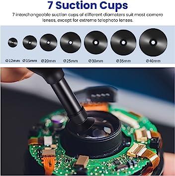 【8-In-1レンズサクションペンキット】このキットには、電球型のレンズ吸盤サクションペンと、極端で大きなレンズを除いてほとんどのカメラレンズ用の異なる直径(12mm、15mm、20mm、25mm、30mm、35mm、40mm)の交換可能なサクションカップ7個が含まれています。【簡単に掃除・修理】カメラレンズ、時計、SMD集積回路、電子部品の修理・掃除に最適です。 2インチ(5cm)の吸引ペンチューブは、小さくて狭い場所に簡単に届きます。【指紋や汚れがない】柔らかい静電気防止ESD導電性シリコン製の吸盤は、レンズを傷つけたり、精密部品を損傷したりせず、指紋や汚れからレンズを清潔に保ちます。【信頼できる吸引力】大きな球形の吸引ペンと7つの異なるサイズの吸盤が十分な吸引力を提供します。操作が簡単で、吸盤でペンを絞ってレンズの表面に吸い込み、軽く持ち上げて放すと、正しい位置に落下します。【パッケージ内容】1×サクションペン、7