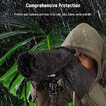 【様々なカメラ&レンズに対応】このレインカバーは、20"x20" (500x500mm) のサイズで、70-200mmレンズ以下のレンズを搭載したコンパクトなDSLR/ミラーレスカメラに適しており、カメラを三脚に取り付けて安定した撮影を行うことができます。a6 a7 a9 a6400 a660