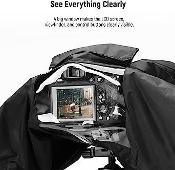 通常1-5営業日で発送:NEEWER カメラレインカバー Sサイズ 丈夫なナイロン製レインコート A7 A9 7D 5D D750 D850カメラ ?200mm以内のレンズに対応 スリーブ ドローストリング 透明窓 PB003
