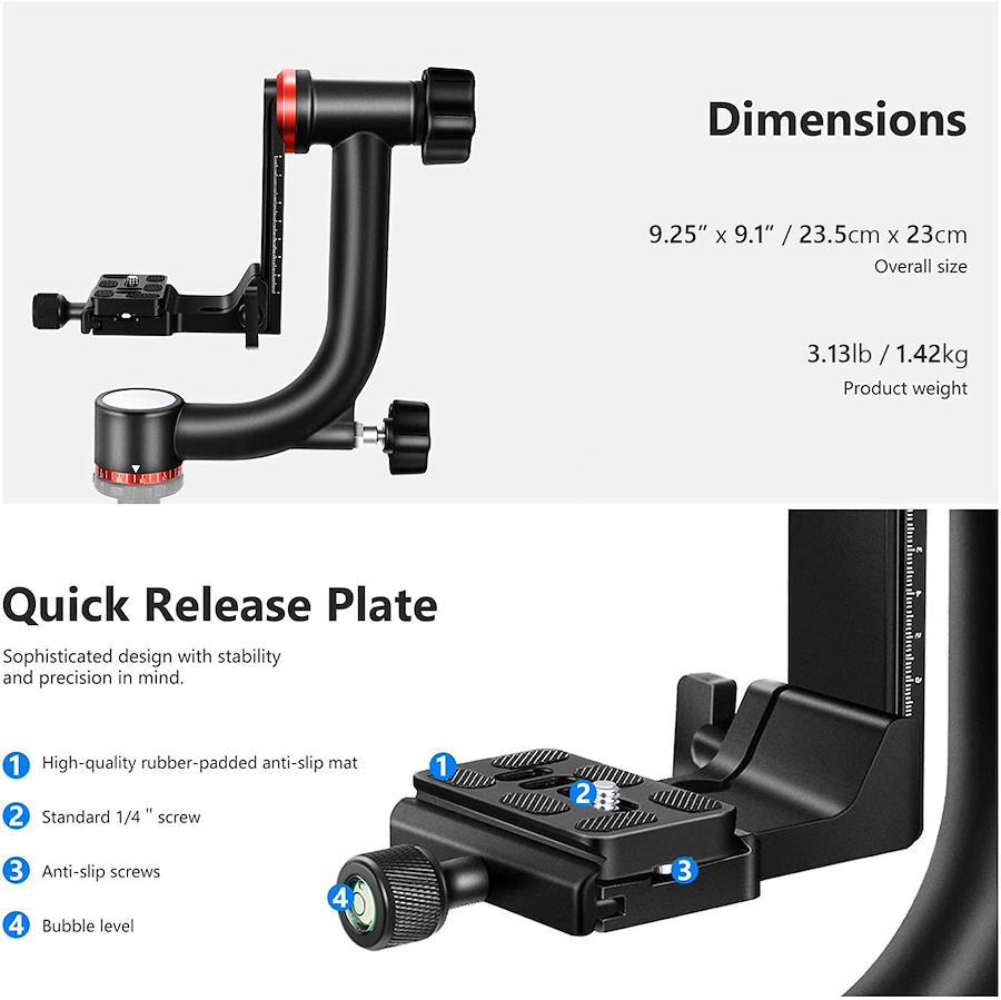 3営業日以内に発送≪新品未開封品≫:NEEWER ジンバル三脚ヘッド 耐荷重アルミ合金 Arcaタイプクイックリリースプレート付き GM101 360度パノラマ撮影 DSLRカメラに対応 最大耐荷重13.6kg