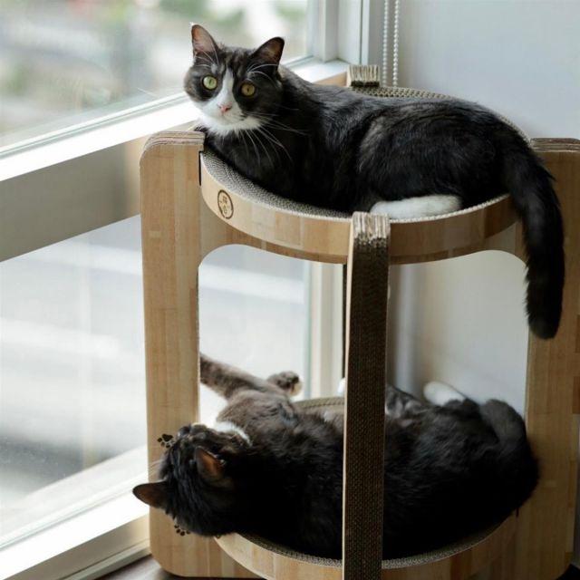 【つめとぎベッドは交換可能&省スペースにも】つめとぎベッドは、同シリーズのバリバリボウル交換用つめとぎ2個パックと同サイズなので、お気に入りを長くご使用いただけます。また1つのタワーで2匹分のつめとぎ兼ベッドとして使えて、省スペースにも。