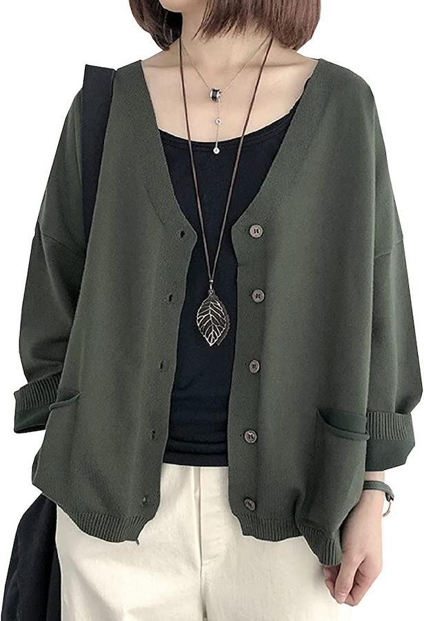 ゆるっとしたフォルムが可愛いVネックカーディガン。