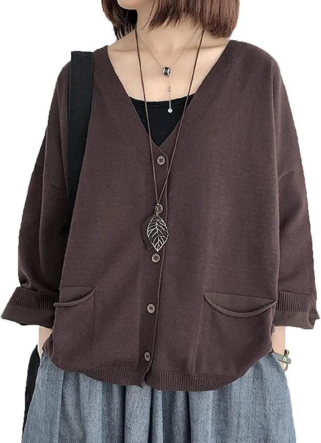 ・程よい抜け感とゆるっとしたフォルムが可愛いVネックカーディガン。