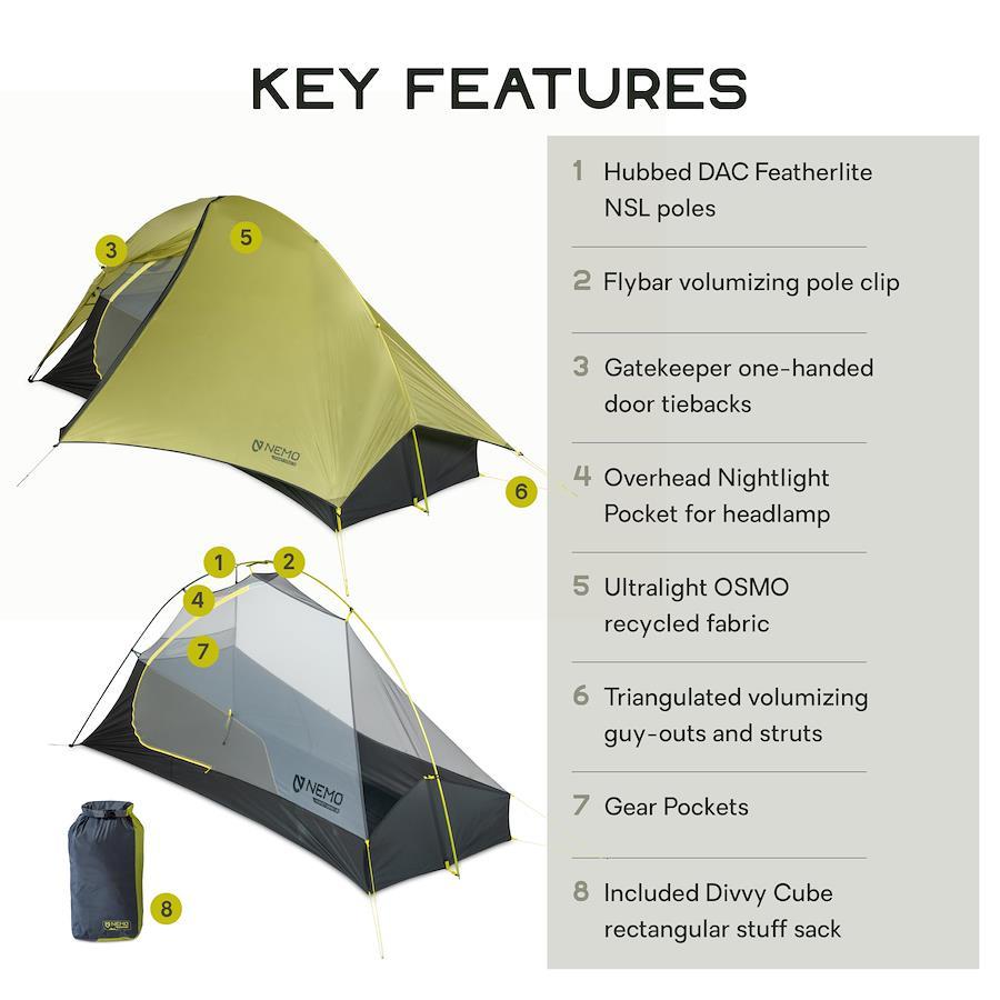 快適性、居住性を保ちながら極限までの軽量化を追及したULバックパッキング向けテント、ホーネットがOSMOバージョンにアップデートされました。インナーテントに風や冷気の侵入を防ぐブリーザブルナイロンを採用。ドア部はメッシュとの2重構造にし、蒸し暑い時には換気を促すことが可能です。インナーテント上部に特許出願中のフライバー?ボリューマイジングポールクリップを設置し、従来モデルよりも頭上の空間を大幅に拡大しています。ライトポケットやボリューマイジングガイアウトなど充実した機能も備えながらも、軽量化を実現しています。