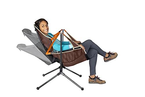 座って体を預けるだけで自動的にリラックスできる位置まで背もたれが倒れるオートリクライニング機能を持ち、ハンモックで寝ているような自然な揺れを楽しめる革新的なキャンピングチェアです。 座面がフレームに吊り下げられた独自の構造によって不整地やビーチでも自然な揺れを楽しむことができます。 エアクラフトグレードのアルミフレームにベント加工を施すことで座面高を下げ、安定感を高めています。 高さの調整ができるヘッドレストやカップホルダー、スマートフォン等を収納できるスタッシュポケットなど細部にわたって使用時の快適性を追求しています。 出し入れがしやすく持ち運びに便利なジッパー式キャリングケースが標準で付属します。