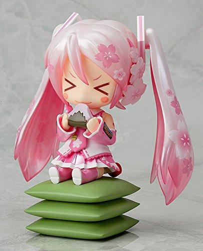 桜をイメージした可愛らしい装いの「桜ミク」が、ねんどろいどで登場です。イラストレーター ぷちでびる氏のイラストを元に、繊細な色使いで仕上げました。出会いと別れの季節にふさわしい「泣き顔」と、無邪気に桜餅を食べる「うにゅー顔」を付属。さらに頭部パーツの差し替えにより、髪飾りを「さくらんぼ」に変更することも可能です。麗らかな春の日を、桜ミクと一緒にお過ごし下さい。