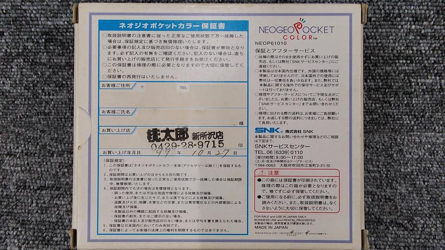 ネオジオポケットカラー NEOP61010 SNK レトロゲーム SNKNEOP61010ネオジオポケットカラー