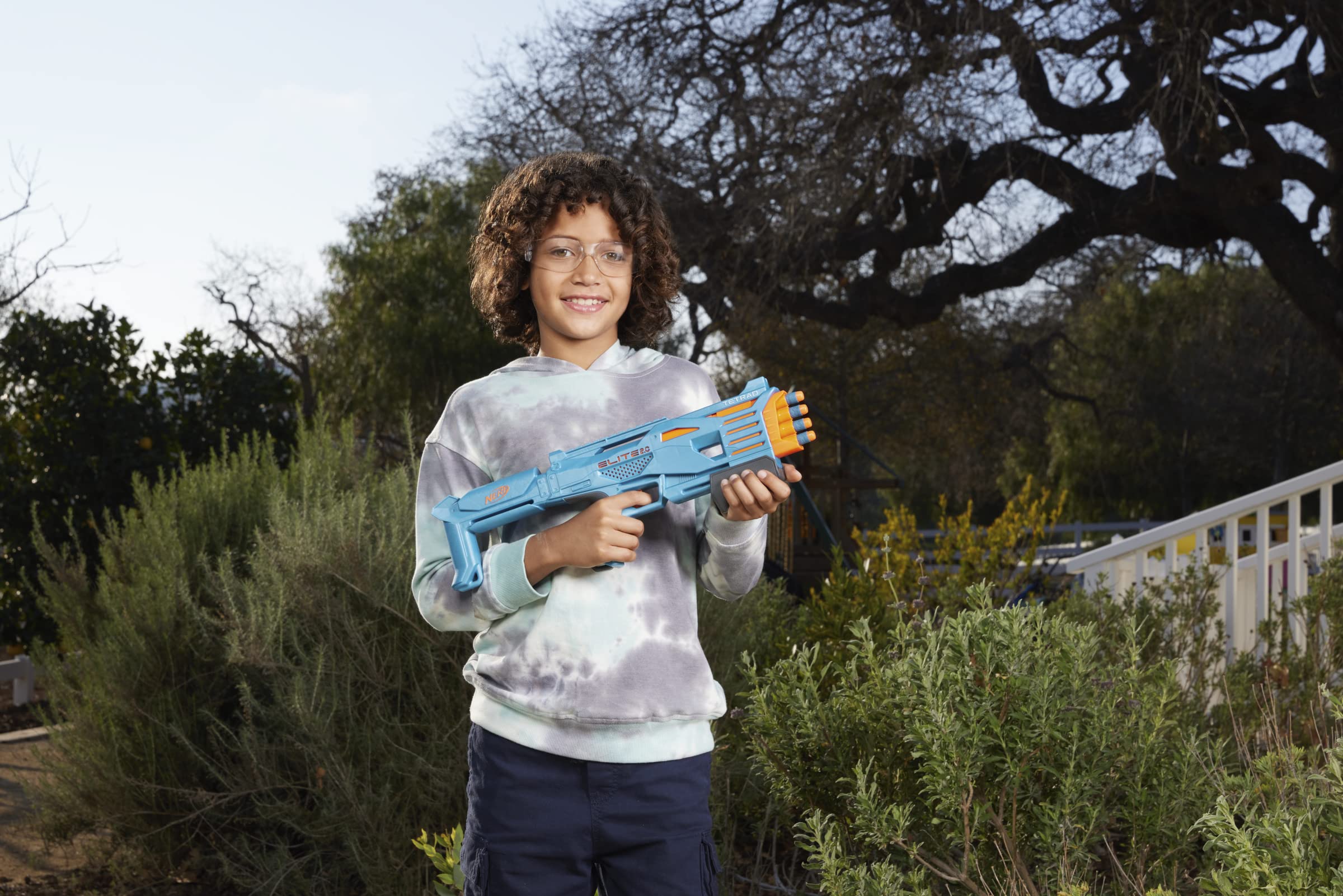 Nerf Elite 2.0 Tetrad QS-4ブラスター、ナーフエリートダーツ4本、4バレルブラスト、タクティカルレール、カスタマイズ機能、ポンプアクション。