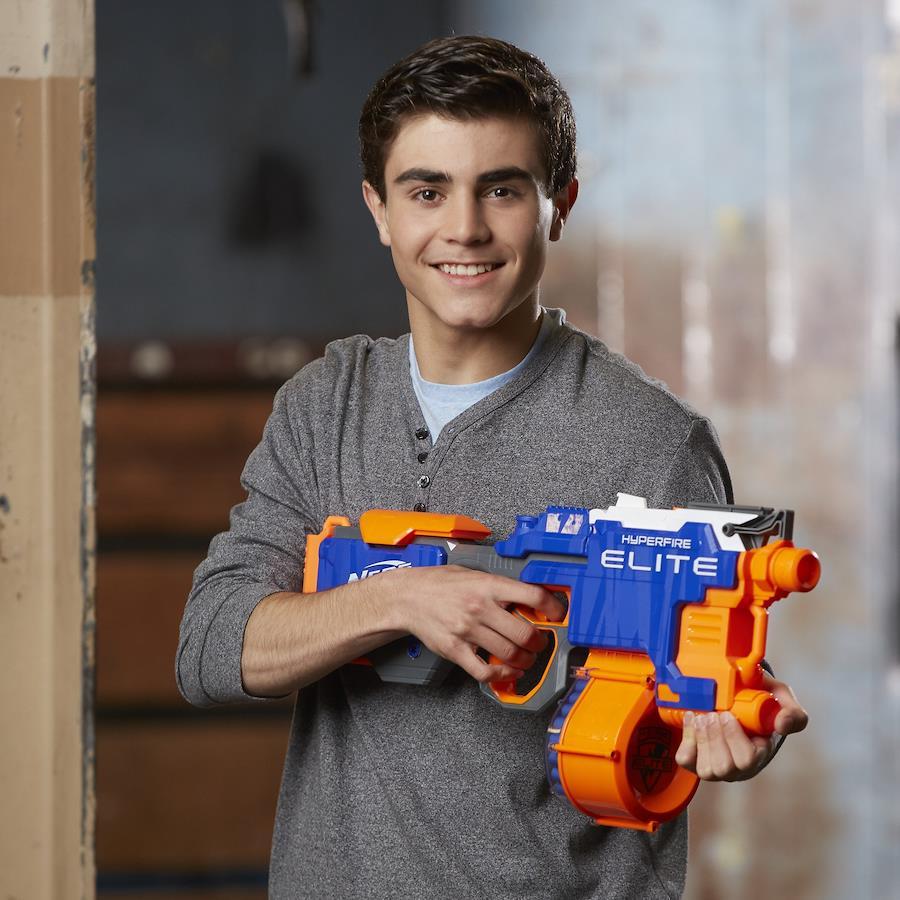 25弾格納マガジンを搭載!ナーフ史上初の秒間/6弾による超高速発射を実現した、フルオート・超高速連射型電動ブラスター!
