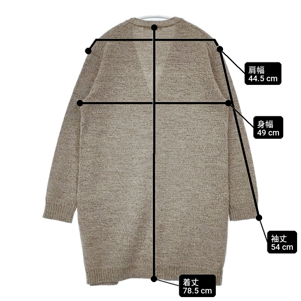 | 実寸サイズ | 肩幅:約44.5cm 着丈:約78.5cm 身幅:約49cm 袖丈:約54cm ※採寸画像がある商品はハンガーに吊るした状態での計測のため、平置きでの採寸とは差が生じる場合がございます。平置きでの実寸サイズをご希望の場合は、ご購入前に必ずご質問ください。 ※記載以外のサイズが合わないことを理由とした返品はできませんので、 記載部分以外で実寸サイズの気になる箇所があれば必ず購入前にご質問ください。 |
