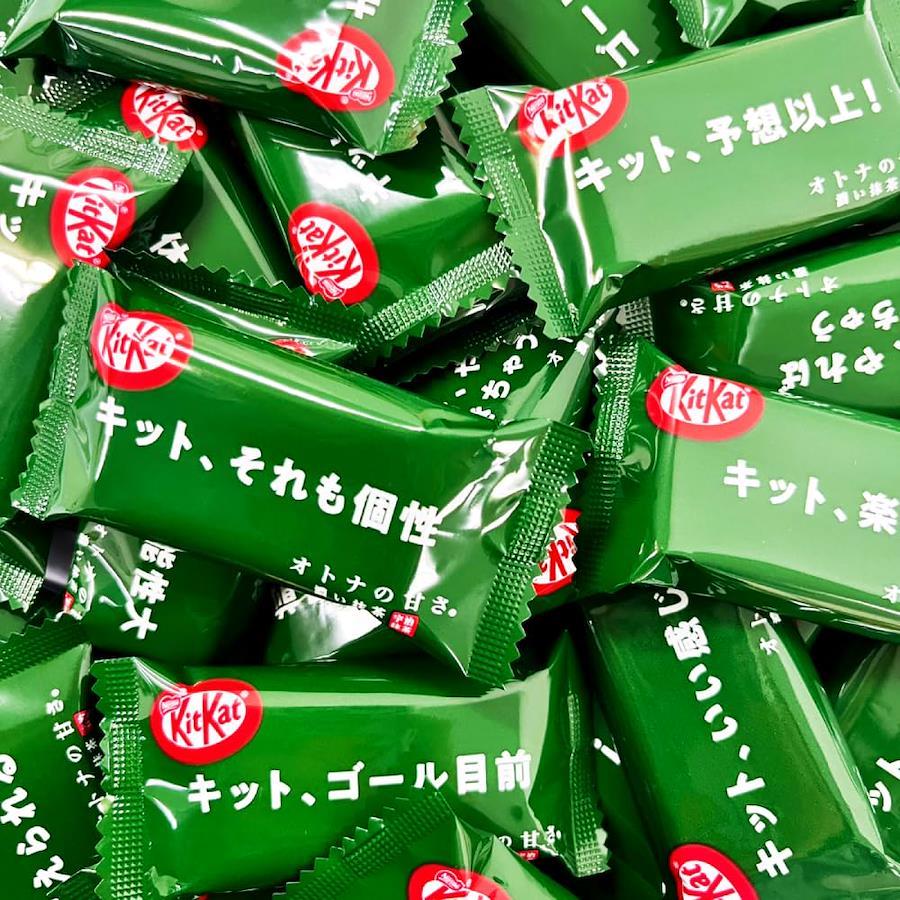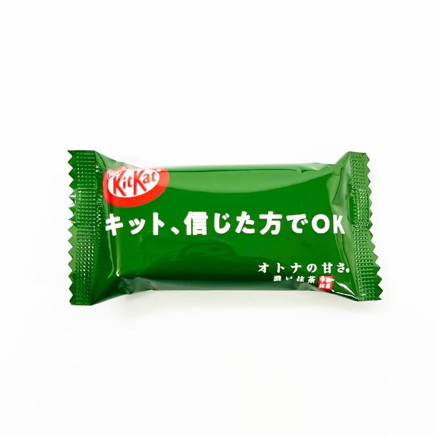 キットカット ミニ オトナの甘さ 濃い抹茶粉砕したビスケットを宇治抹茶風味の生地に練り込み、本格抹茶の深い苦みや香り、旨味が楽しめる本格的なオトナの味わいを実現しました。