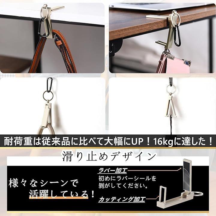 バッグハンガーとして、テーブルフックとして、あるいはカバン掛けとしても、多目的に利用できる便利な 1 品です。