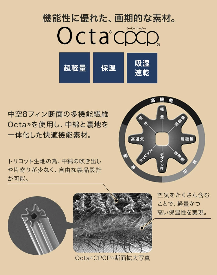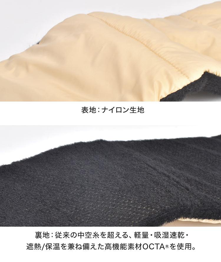 【コンパクトマフラー】コンパクトに携帯可能なパッカブル仕様のマフラー。裏地に従来の中空糸を超える、軽量・吸湿速乾・遮熱/保温を兼ね備えた帝人フロンティアの高機能素材OCTAを採用。男女問わず使えるシンプルなワンポイントロゴデザインです。