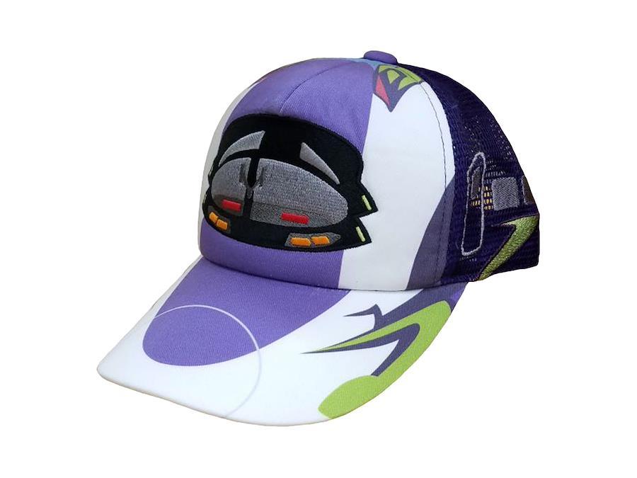 エヴァンゲリオン新幹線 500TYPE EVAでモチーフデザインされた帽子。要所を刺繍でデザインされた【キッズ用】帽子です!!
