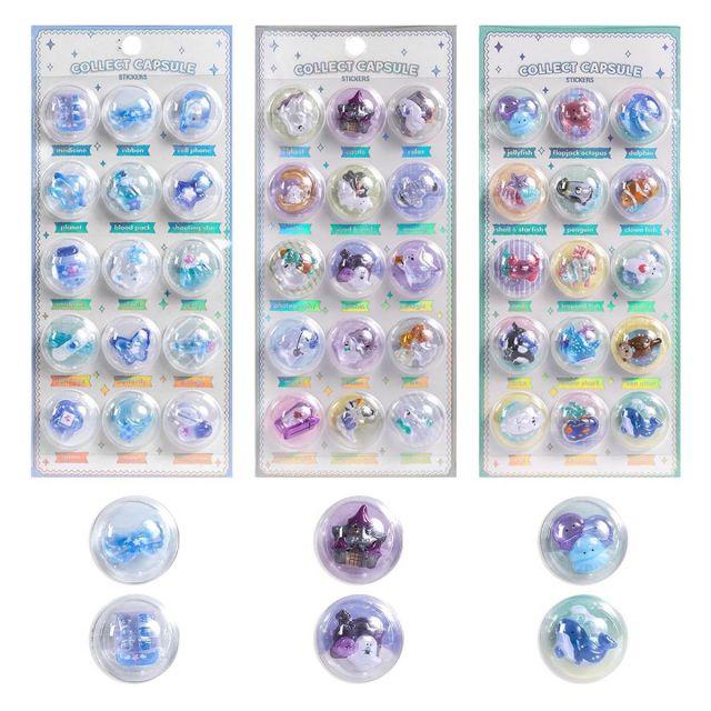 [New for 2025] happykau Squishy Capsule Stickers, 3-Piece Set, 3D Relief Epoxy Resin, Kids DIY, Stylish, Cute, Encouraging Stickers, Creative, Exquisite Patterns, Planner Decoration, Cell Phone Decoration, Diary Decoration, Girls, Cute, Creative Gift