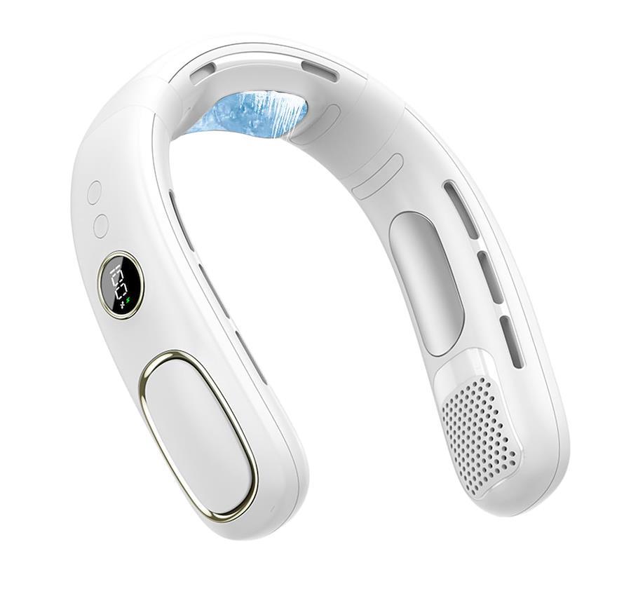 [New for Summer 2025: Instant Cooling Neck Fan] Neck Fan, Neck Cooler, Ultra Lightweight, Neck Fan, Quiet Design, 5 Levels of Airflow Adjustment, Equipped with Cooling Plate, Portable Fan, 360° Powerful Airflow, 5000mAh Large Capacity, Bladeless