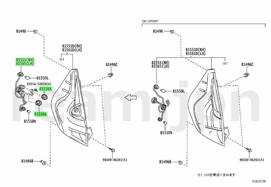 トヨタ純正 アクア NHP10 後期 テールランプ テールレンズ ハーネス 配線 左右 JDM