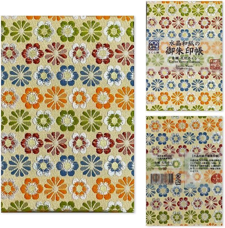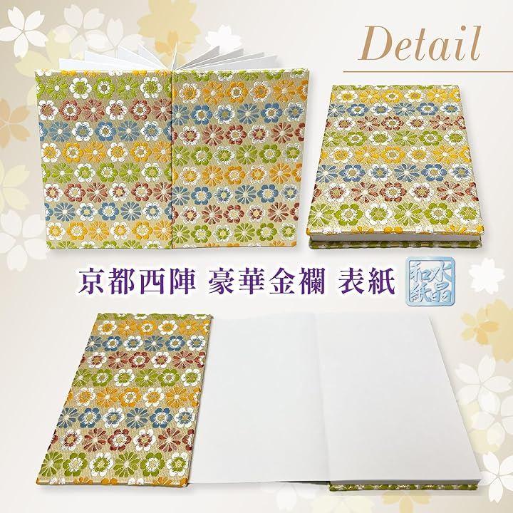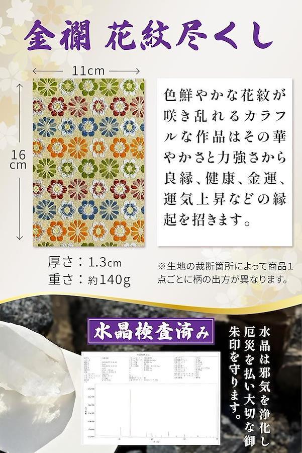 「サイズ」(約)縦16cmx横11cmx厚み1.3cm、重量:約140g 「表紙」京都 西陣 織物 高級金襴 「中紙」水晶入り越前和紙(特殊加工紙)