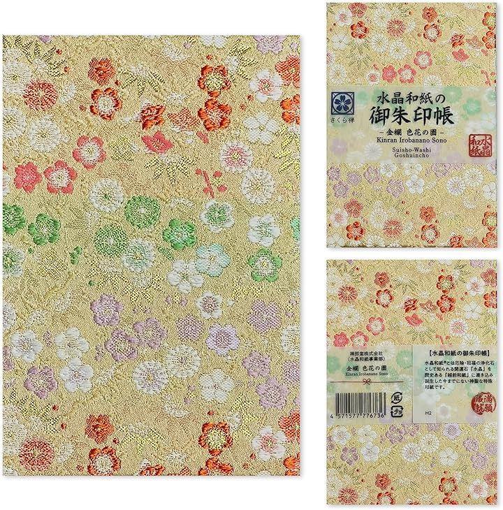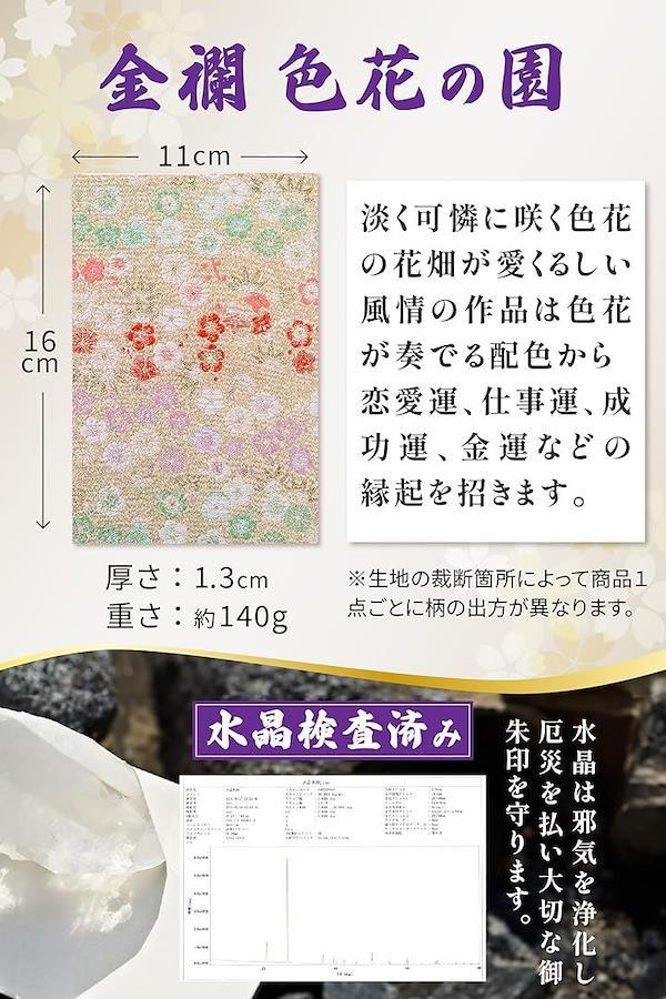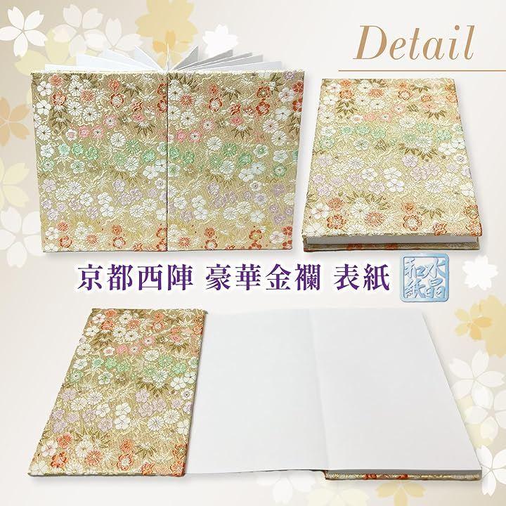 「サイズ」(約)縦16cmx横11cmx厚み1.3cm、重量:約140g 「表紙」京都 西陣 織物 高級金襴 「中紙」水晶入り越前和紙(特殊加工紙)