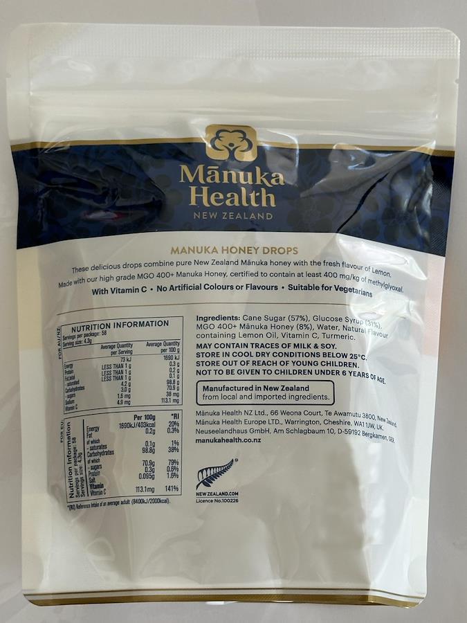 ニュージーランド産マヌカハニーMGO400+を配合100%天然の材料から作られたキャンディー。お子様にも食べやすい味です。外出先や移動中に、手軽にマヌカハニーとビタミンCの効果を味わえます。原産国:ニュージーランド内容量:250g