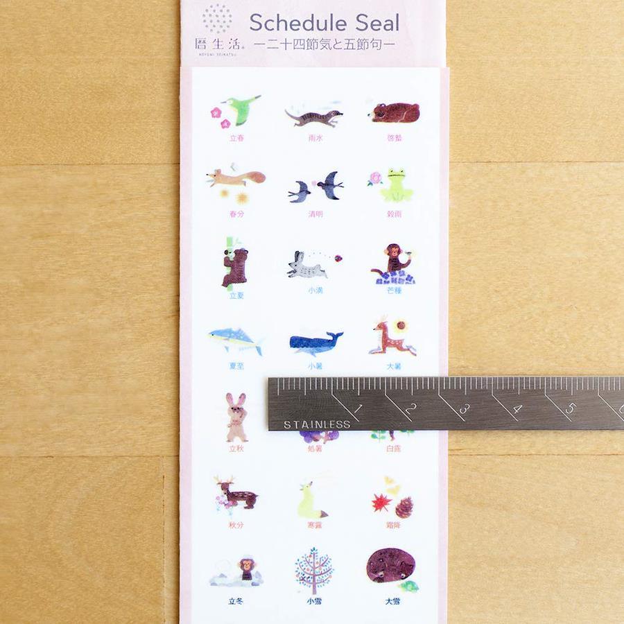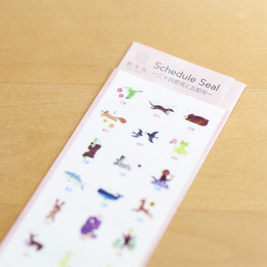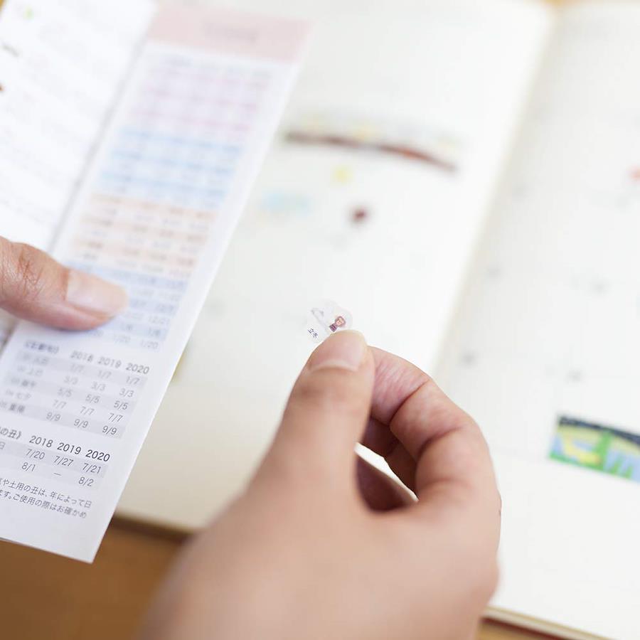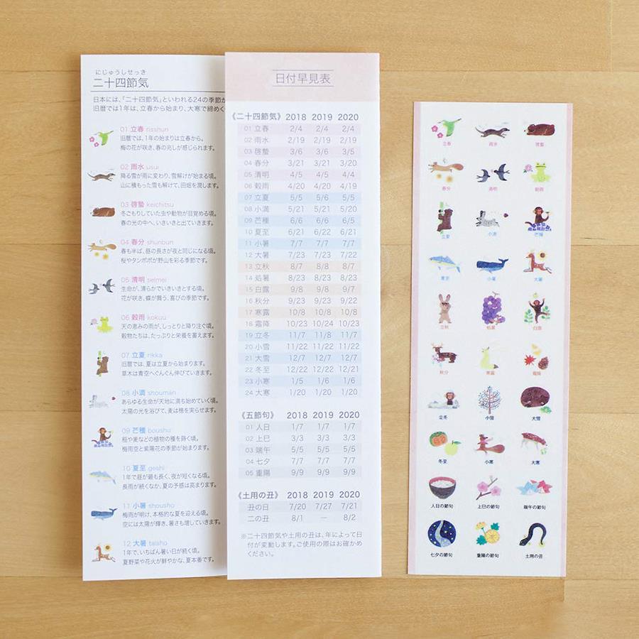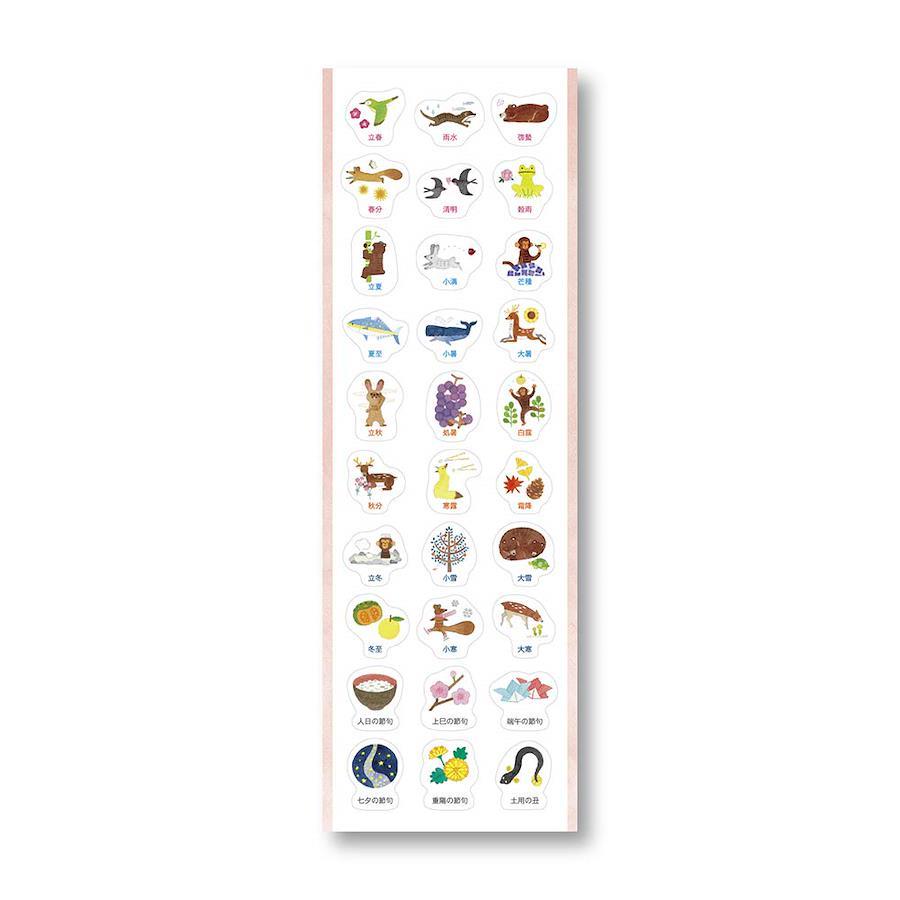 日本の四季をもっと身近に感じるダイアリーシール。。二十四節気や節句の日、吉日など、暦の魅力が満載のシールです。。手帳やカレンダーに貼れば、日々の季節の移ろいを身近に感じられます。。後ろが透ける半透明タイプのシールなので、文字や罫線の邪魔をすることがありません。やわらかい風合いの和紙のシールです。。豆知識が楽しい、小さな暦のしおり付きで、二十四節気と五節句を知ることができます。。日本製。。。サイズ:縦=185mm 横=55mm 。商品色傾向:ピンク。。イラスト。表紙パターン:こどもの日。 品番:NK9882