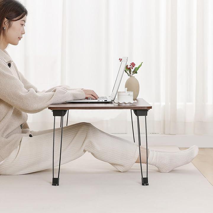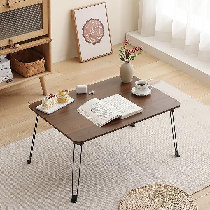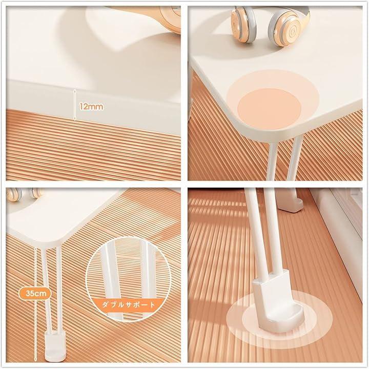 「折りたたみ式x大容量表面」:L THOOH ちゃぶ台の足が折りたためて、折りたたみ机ば厚さ約5.5cmになるので、ベッドの下などの隙間などに収納でき、便利です。