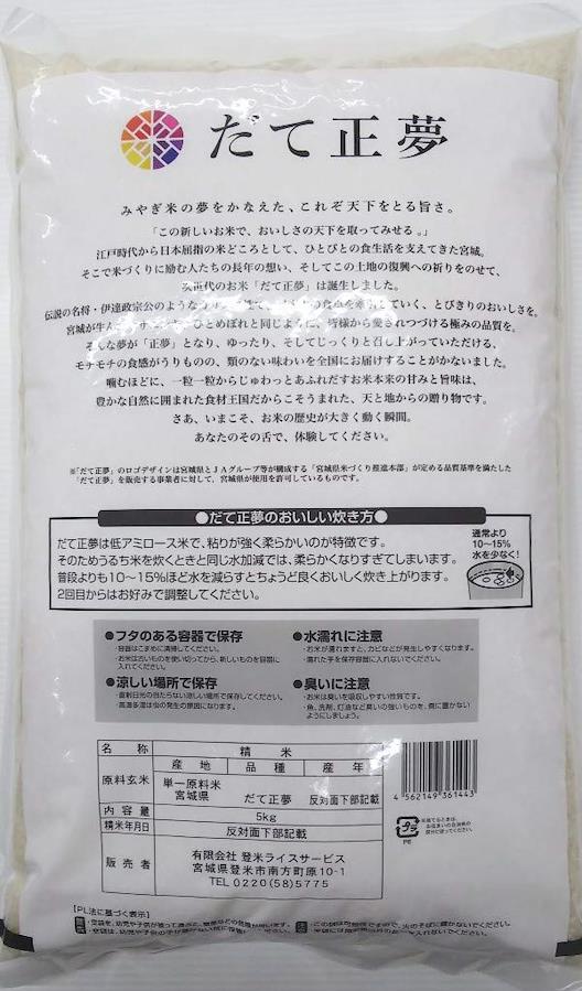 名称:精米産地:原料:宮城県(単一原料米)品種:だて正夢内容量:5kg×2産年:1年産
