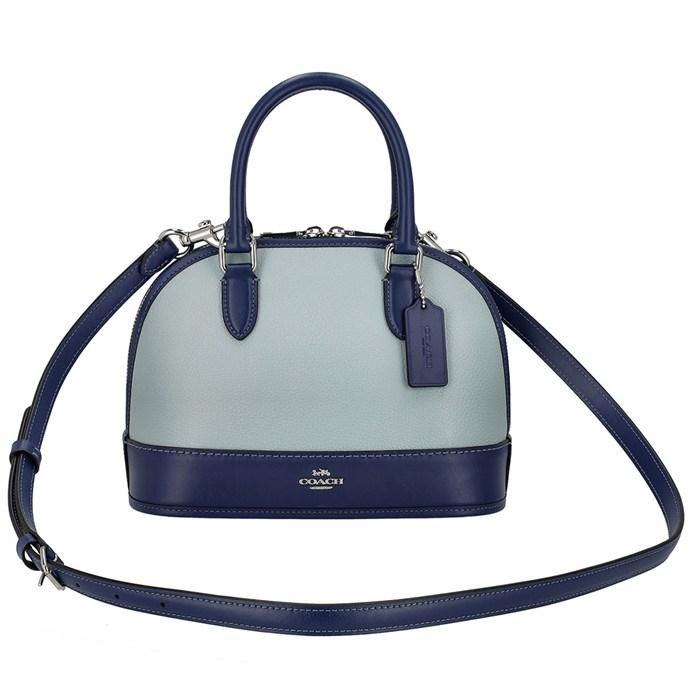 ■商品名サブリナ サッチェルバッグ カラーブロック CAM56 SVXUS 2025 SS ライトブルー リファインド ぺブルレザー ディープブルー スムースレザー シルバー金具