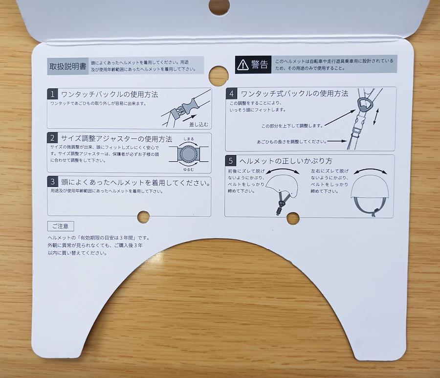 サイズはMサイズ(頭囲:50~56cm)サイズ調節ダイヤル付、対象年齢:3~8歳の子供用ヘルメット