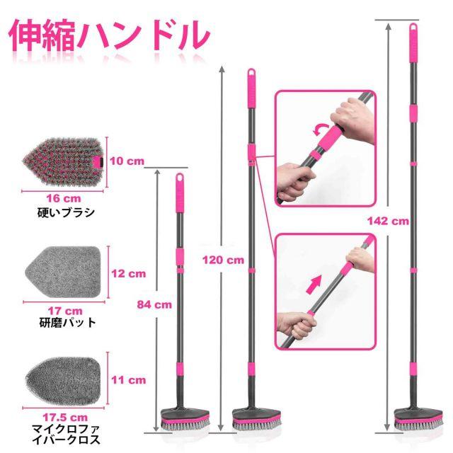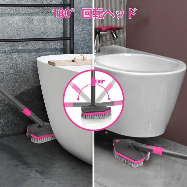 サイズ:標準◆商品名:NEWEお風呂掃除ブラシ,デッキブラシ伸縮式ロングハンドル付142cm,浴室床ブラシクリーニング用交換ヘッド4個付きお風呂掃除用浴槽床幅木シンクキッチントイレ(ローズ・レッド)