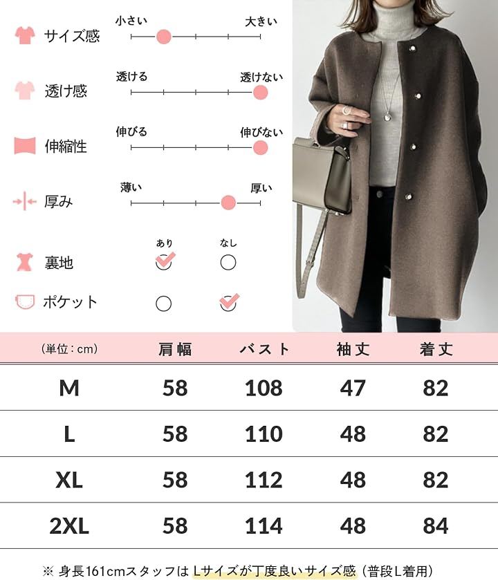 ワンピースやドレスに羽織ればオケージョンシーンでも着映えするキレイめコーデに。落ち着いた魅力のコートはどんなシーンでも活躍するのでヘビロテすること間違いなし。