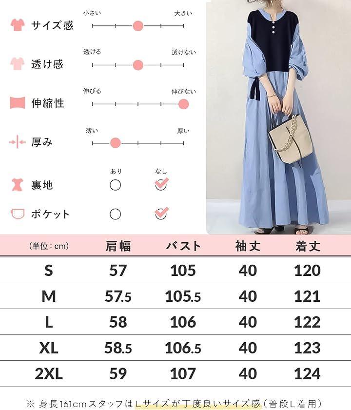 サイズ:肩幅/バスト/袖丈/着丈 (S)57/105/40/120 (M)57.5/105.5/40/121 (L)58/106/40/122 (XL)58.5/106.5/40/123 (2XL)59/107/40/124