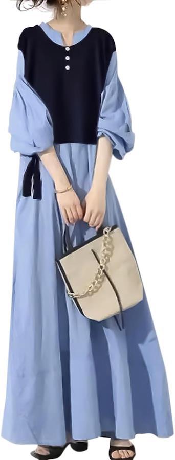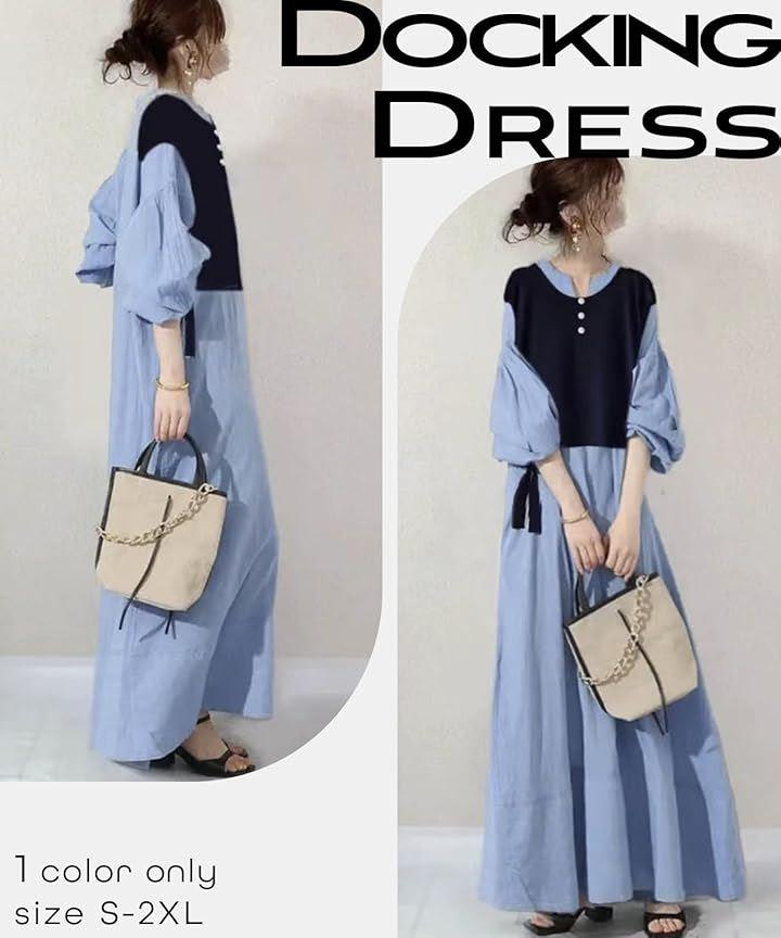 「一枚でコーデが完成するドッキングワンピ」フェミニンでありながらカジュアルな雰囲気を纏う、重ね着風ロングワンピースが登場しました。ブラウスシャツのようなスタイリッシュなデザインで、オフィスウェアとしても活躍する一枚。