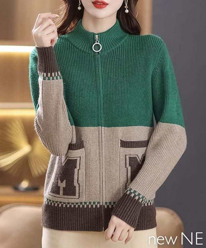 リブ編みのラインが縦にすっきりと伸び、細見え効果も抜群です。 襟元は高めのデザインで、寒い季節にも首元をしっかりと保温。