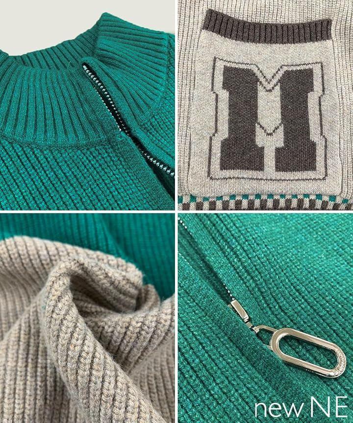 「シーンを選ばないニットジャケット」シンプルでありながらアクセントが効いたバイカラーデザインが魅力的なニットジャケットの登場です。 首元の高めのデザインが暖かみをプラスし、どんなシーンでも合わせやすいアイテム。