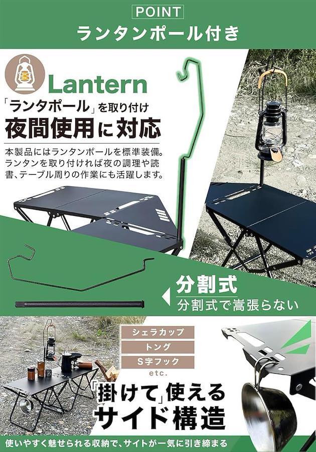 テーブルに直接取り付けできるランタンフックが付属しており、夜間の照明確保もスマートに。