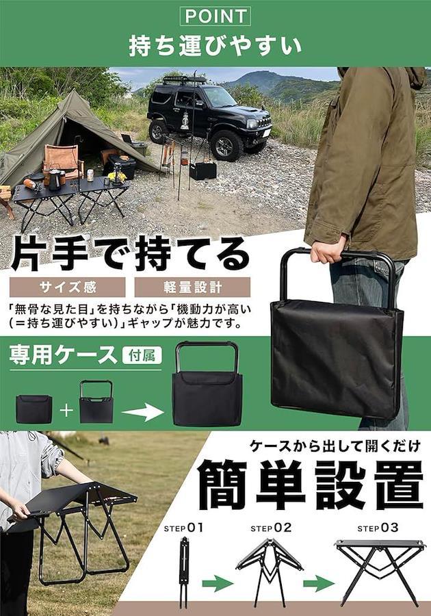 軽量&コンパクトながら、焚き火の横にちょうどいい天板サイズで、道具を無理なく展開できます。