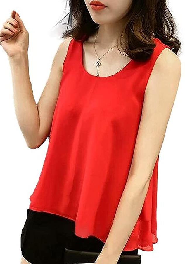涼しげな雰囲気のシフォンノースリーブブラウスは、繊細で綺麗な模様が上品な印象に。