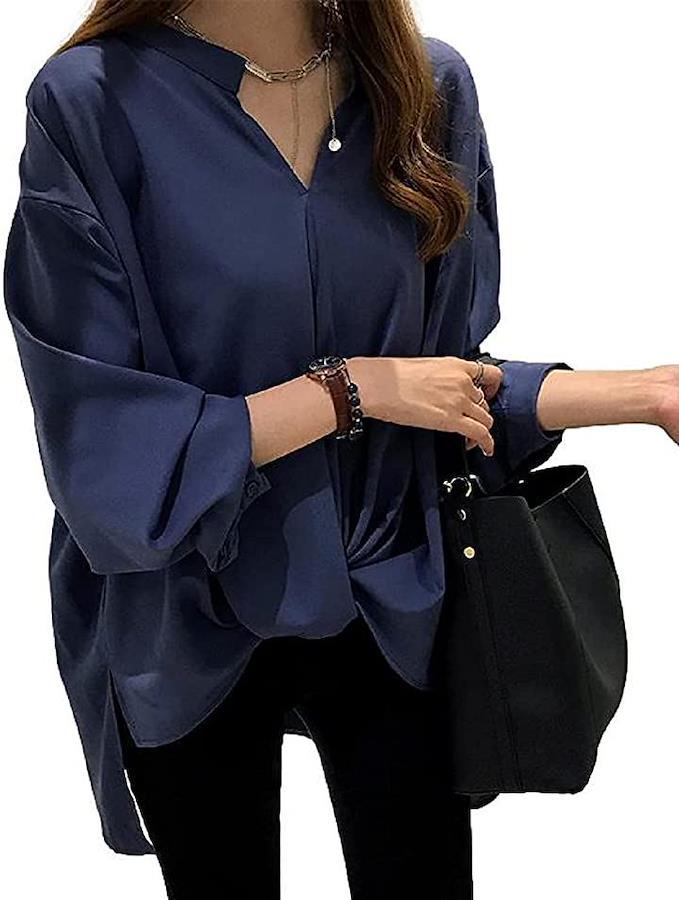 ・オトナで洗礼されたスタイリングを叶える一枚持っておけば間違いないアイテム。首回りはデコルテのきれいに見えるVネックにすることで、 華奢で女性らしい印象を与えてくれるブラウスです。