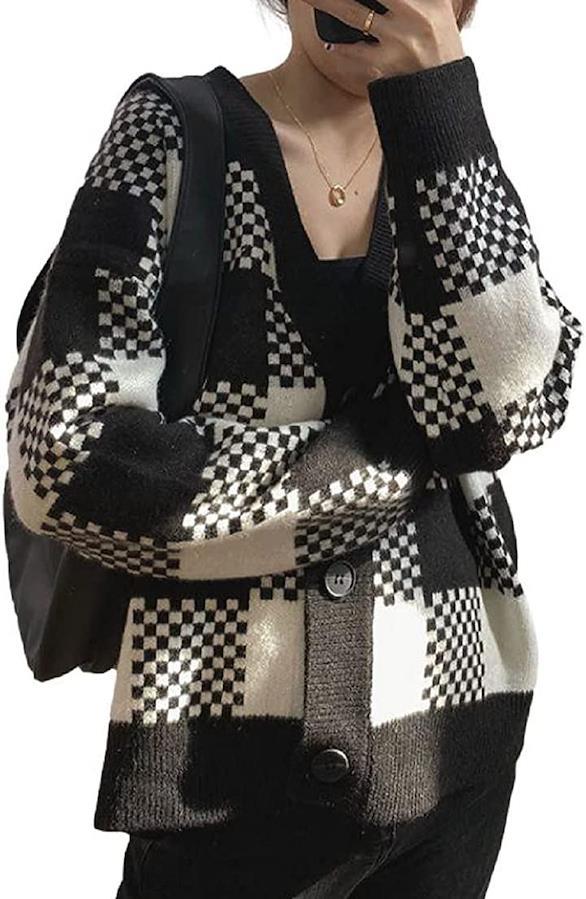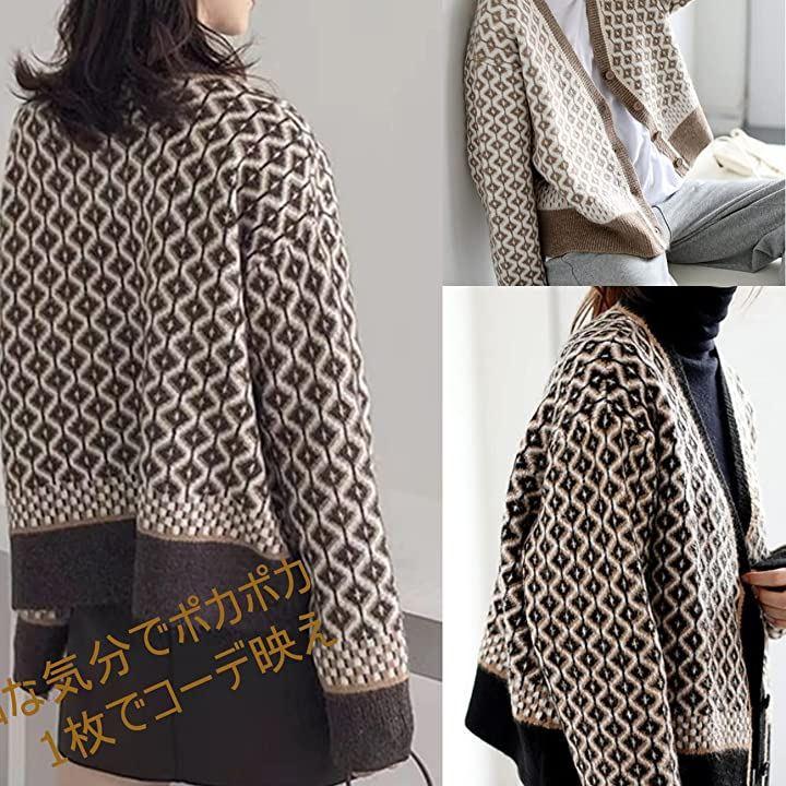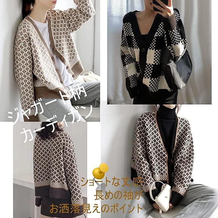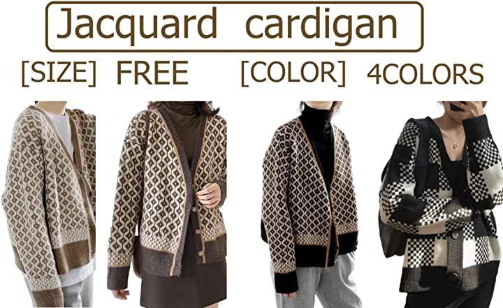 1枚でコーデ映え、チェックとジャガード柄のジャガードニットカーデ。