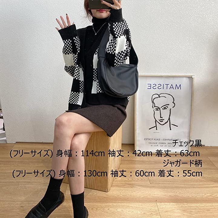 ・チェック黒 (フリーサイズ) 身幅 : 114cm 袖丈 : 42cm 着丈 : 63cm ジャガード柄(フリーサイズ) 身幅 : 130cm 袖丈 : 60cm 着丈 : 55cm