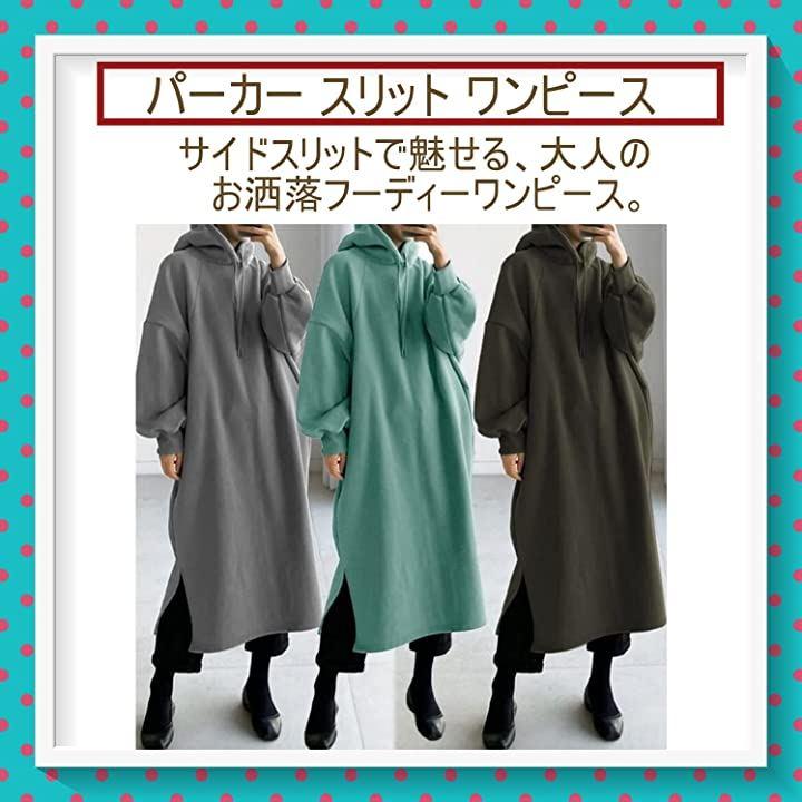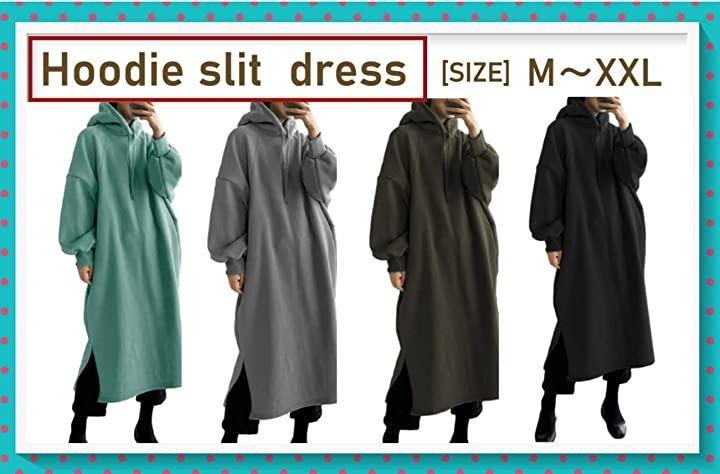 ・サイドスリットで魅せる、大人のお洒落フーディーワンピース。