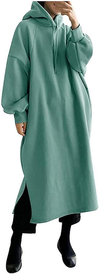 サイドスリットで魅せる、大人のお洒落フーディーワンピース。