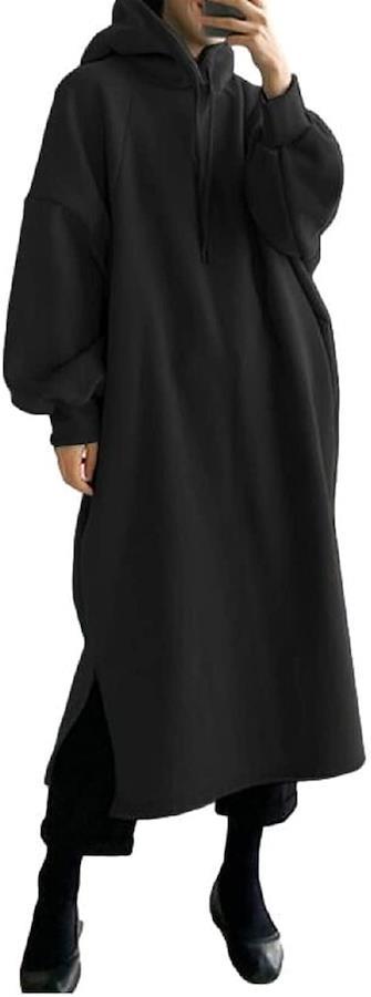 サイドスリットで魅せる、大人のお洒落フーディーワンピース。