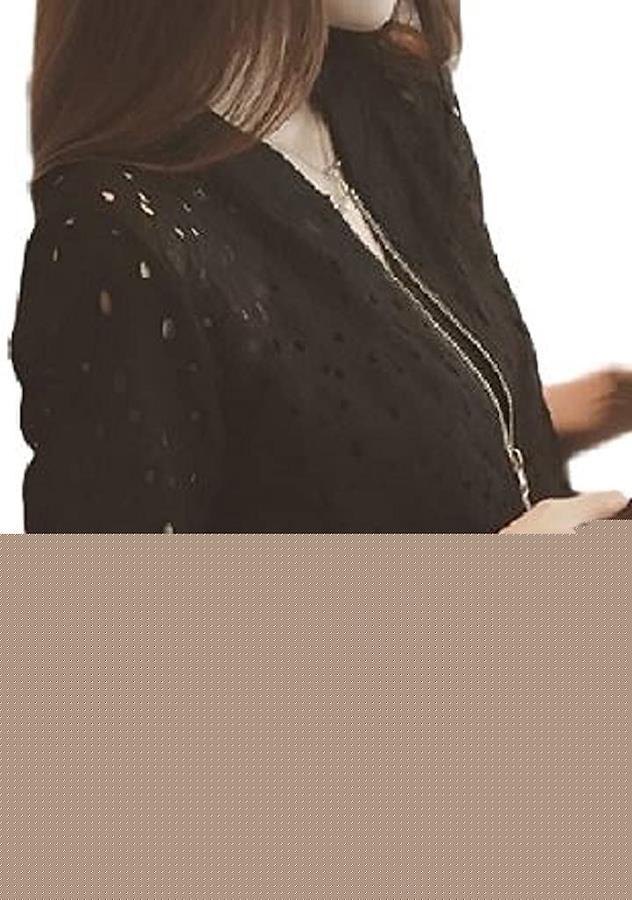 Nibunnoichi Style Black Long Sleeve Sheer Lace Short Length Cardigan Top Ladies