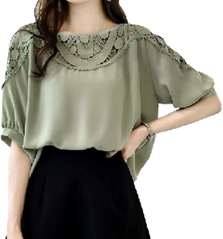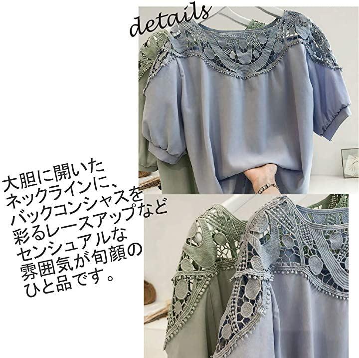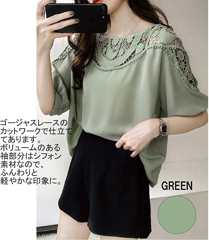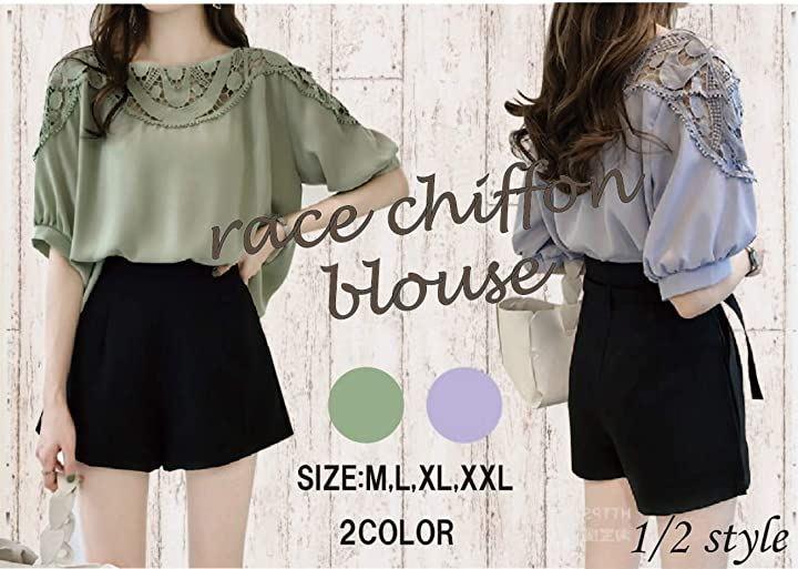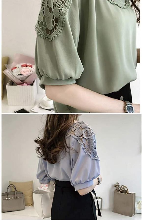 5分袖きれいめレースとろみレトロブラウスチュニックプルオーバー