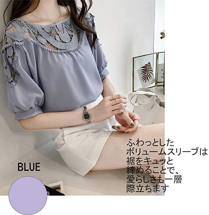 デコルテから肩のシースルーレースがエレガントな女性になれるプルオーバーブラウス*ボリュームがある袖は二の腕をカバーしてくれる嬉しいポイント。